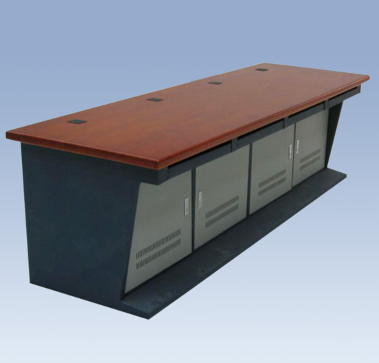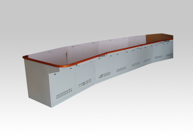 2、操作臺主要用于電視臺,輪船,車站,機(jī)場,證券等大型機(jī)房控制。 外表噴塑,結(jié)構(gòu)可拆卸,局部可用防火密度木板等材料裝飾,鋼木結(jié)合構(gòu)成,外型高雅美觀,工藝精湛。