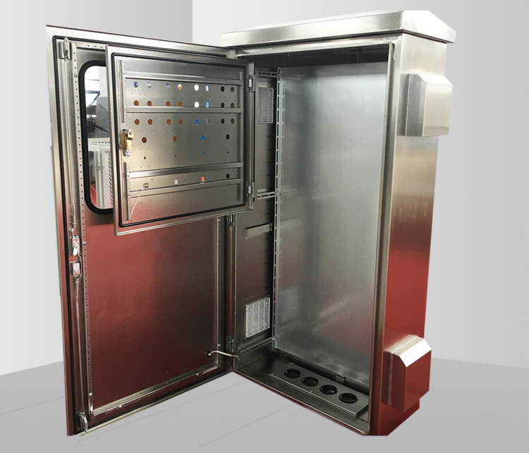 不銹鋼機柜鋼結構,聚氨脂密封膠條密封性能可靠,門四角采用密封螺釘固定,防止灰塵和水進入箱內,并能夠完好地與PU發泡膠條,形成對箱內的保護。箱體采用防雨槽結構,箱體內部配一件安裝板,箱體表面拉絲處理,安裝板采用鍍鋅板加工;盡顯高檔品質,裝置容易。防護設施完善,排列有系統,是KL接線箱的優點。